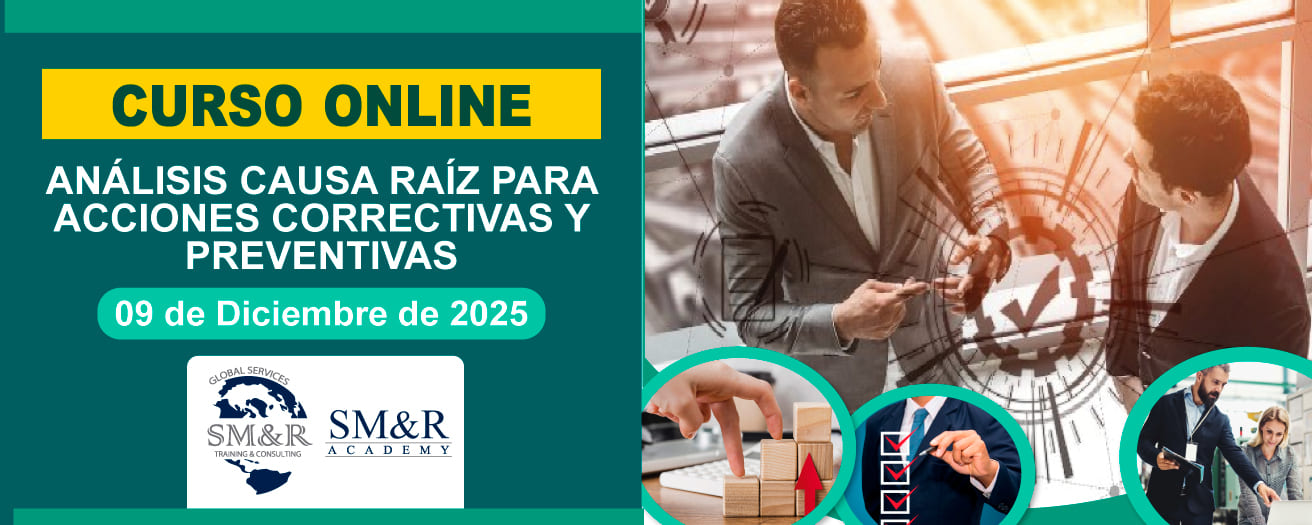 Los participantes que completen los parámetros mínimos de evaluación, tanto en rendimiento académico como en asistencia a sesiones de trabajo, obtendrán el CERTIFICADO DE APROBACIÓN “ANÁLISIS CAUSA RAÍZ PARA ACCIONES CORRECTIVAS Y PREVENTIVAS” – 8 horas, emitido por: Global Services SM&R Training & Consulting