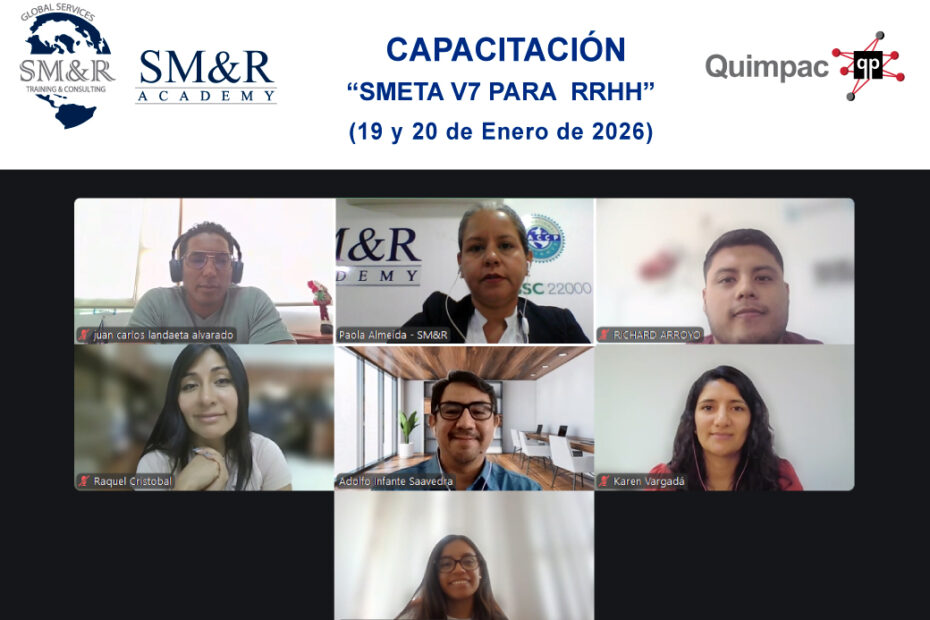 Con excelentes resultados y gran éxito finalizó la Capacitación SMETA versión 7 para RRHH, en modalidad Online en vivo, exclusivo para colaboradores seleccionados de la empresa QUIMPAC S.A (Perú), con una carga horaria de 04… Capacitación Online – SMETA versión 7 para RRHH– Online – Inhouse – Enero 2026