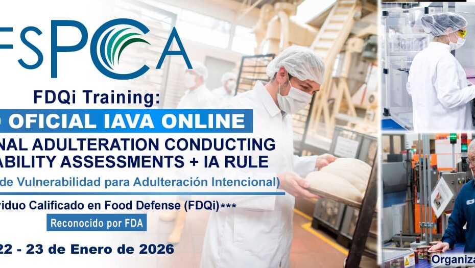 FDQi Training: Curso Oficial FSPCA – IAVA – ONLINE – Intentional Adulteration Conducting Vulnerability Assessments (Evaluaciones de Vulnerabilidad para Adulteración Intencional) + IA Rule Este Curso Oficial proporcionará a los participantes el conocimiento para implementar… Curso Oficial FSPCA – IAVA – Online – USA: Intentional Adulteration – Food Defense – IA Rule – Enero 2026
