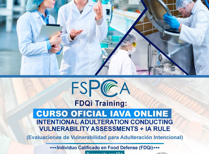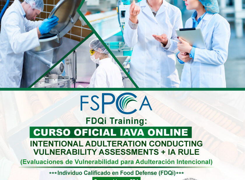 OPEN: CURSO OFICIAL FSPCA – IAVA – INTENTIONAL ADULTERATION CONDUCTING VULNERABILITY ASSESSMENTS – FOOD DEFENSE QUALIFIED INDIVIDUAL (FDQi) – 16 HRS – CHILE