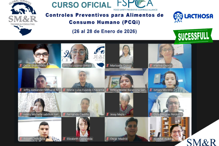 Con excelentes resultados y gran éxito finalizó el Curso Oficial FSPCA – FSVP – Programa de Verificación de Proveedores Extranjeros, en modalidad Online en vivo, exclusivo para colaboradores seleccionados de la empresa PRODUCTOS SUR S.L.… Curso Oficial FSPCA – FSVP – Programa de Verificación de Proveedores Extranjeros – Online – Inhouse – Enero 2026