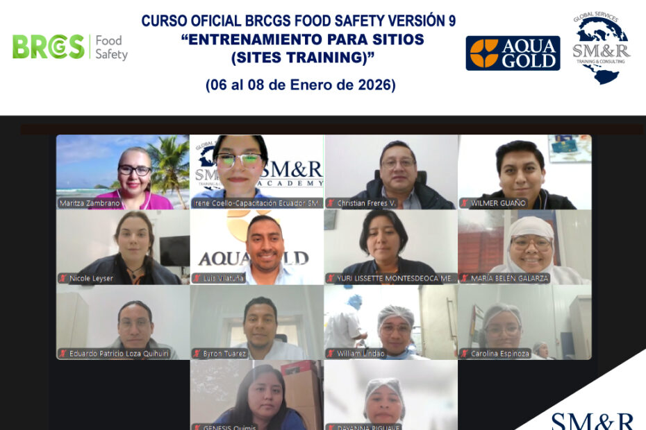 Se ejecutó con gran éxito el Curso Oficial BRCGS – Food Safety versión 9 – «Entrenamiento para Sitios (Sites Training)», en modalidad Online en vivo, exclusivo para colaboradores seleccionados de la empresa AQUAGOLD S.A. (Ecuador),… Curso Oficial BRCGS – Food Safety versión 9: Entrenamiento para Sitios (Sites Training)- Inhouse – Online – Enero 2026