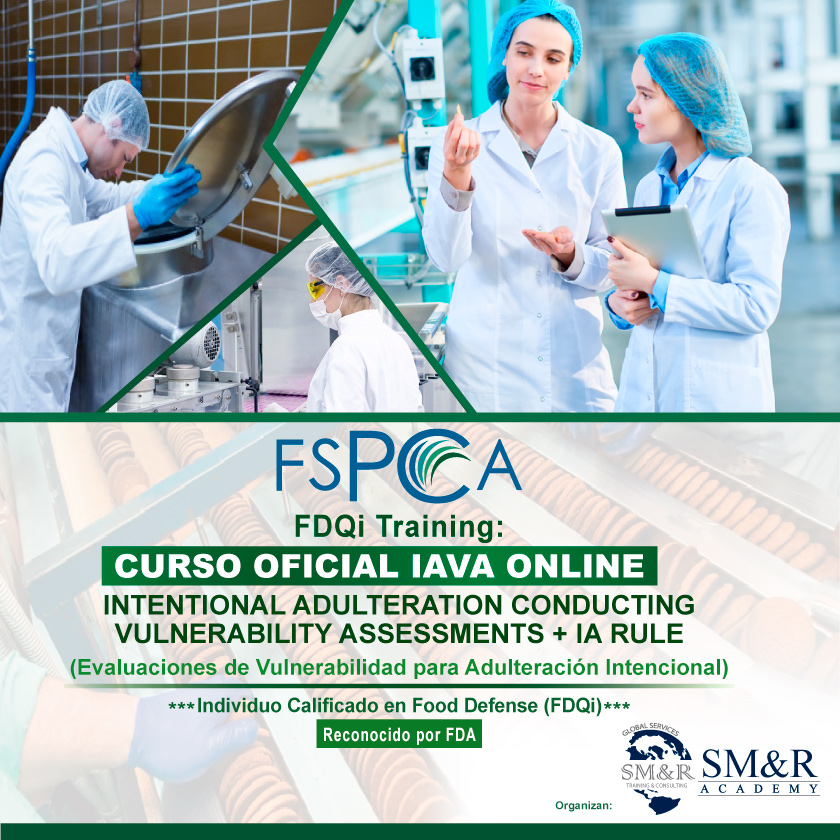 INHOUSE: ECUADOR – ONLINE – FSMA FDQI TRAINING – CURSO OFICIAL FSPCA – IAVA – INTENTIONAL ADULTERATION CONDUCTING VULNERABILITY ASSESSMENTS + IA RULE – FOOD DEFENSE QUALIFIED INDIVIDUAL – EXCLUSIVO PARA PRONACA