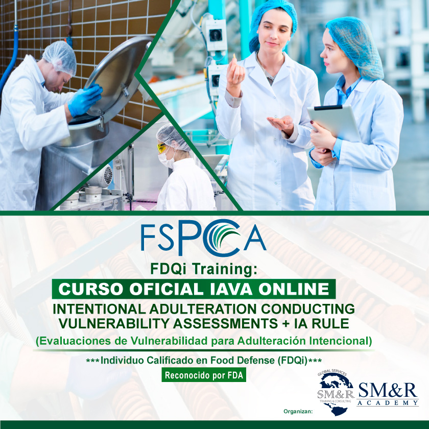 OPEN: CURSO OFICIAL FSPCA – IAVA – INTENTIONAL ADULTERATION CONDUCTING VULNERABILITY ASSESSMENTS – FOOD DEFENSE QUALIFIED INDIVIDUAL (FDQi) – 16 HRS – CHILE