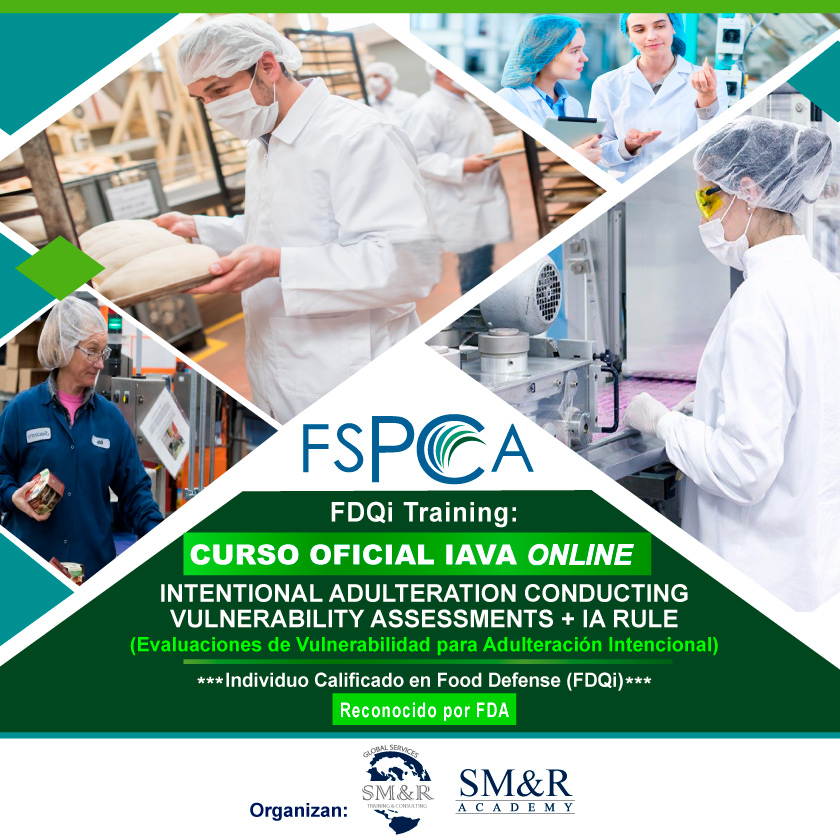 OPEN: FDQI TRAINING: CURSO OFICIAL FSPCA – IAVA – INTENTIONAL ADULTERATION CONDUCTING VULNERABILITY ASSESSMENTS + IA RULE – FOOD DEFENSE QUALIFIED INDIVIDUAL (FDQi) – 16 HRS – ESPAÑA
