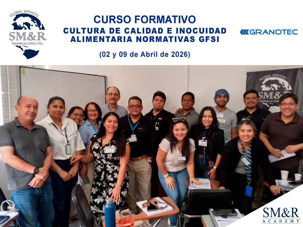 Se ejecutó con gran éxito el Curso Oficial BRCGS – Food Safety versión 9 – «Entrenamiento para Sitios (Sites Training)», en modalidad Online en vivo, exclusivo para colaboradores seleccionados de la empresa AGRÍCOLA SAFCO PERÚ S.A. (Ecuador), con una carga horaria de 16 horas.