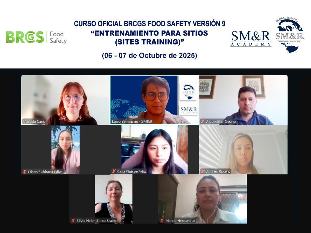 Este Curso Oficial BRCGS – Food Safety versión 9 – Entrenamiento para Sitios (Sites Training), se ejecutó en modalidad Online en vivo, en 2 días continuos de 8 horas por día.