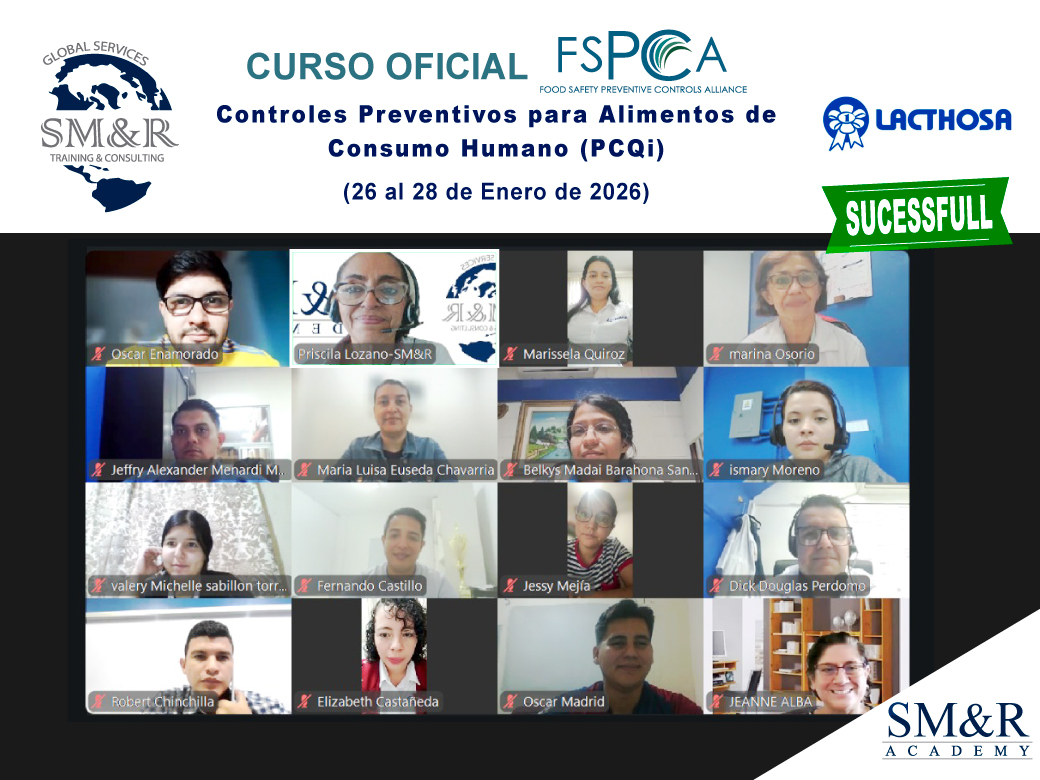 Este Curso Oficial FSPCA – Controles Preventivos para Alimentos de Consumo Humano Versión 2.0 (PCQi), exclusivo para colaboradores seleccionados de las empresas LÁCTEOS DE HONDURAS S.A – LATHOSA (Honduras) , con una carga horaria de 24 horas, en modalidad Online en vivo.