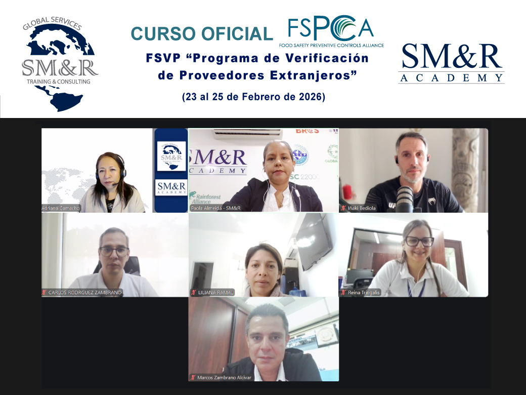 Con excelentes resultados y gran éxito finalizó el Curso Oficial FSPCA – FSVP – Programa de Verificación de Proveedores Extranjeros, en modalidad Online en vivo, con una carga horaria de 12 horas, dirigido a 06 participantes.