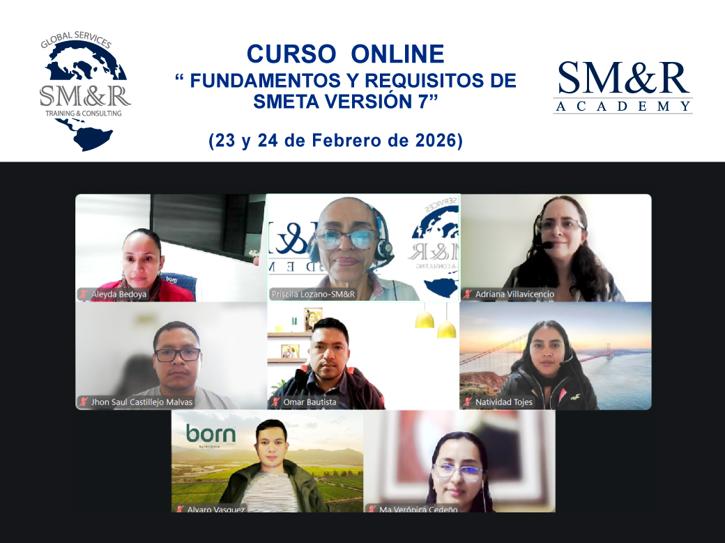 Con excelentes comentarios y exitosamente finalizó el Curso «Fundamentos y Requisitos de SMETA Versión 7», en modalidad Online en vivo, con una carga horaria de 16 horas.