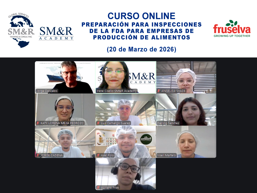 Con excelentes comentarios finalizó este Viernes 20 de Marzo el Curso Online «Preparación para inspecciones de la FDA para empresas de Producción de Alimentos», exclusivo para colaboradores seleccionados de la empresa FRUSELVA INTERNATIONAL (Colombia), con una carga horaria de 08 horas.
